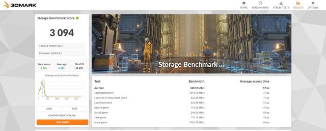 3DMark SSD 得分 3094
