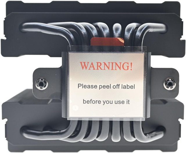 ▼散熱器底座的處理器接觸面有保護貼,上面用英文標示”警告!使用前請撕除保護貼”