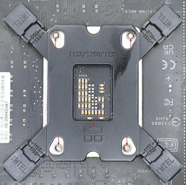 準處理器扣具底板3個螺絲鎖點位置(紅色箭頭)