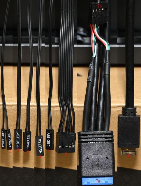 開關接頭,5為燈光開關接頭,6為耳機/麥克風插座接頭,7a為USB3.2 Type-A主機板接頭