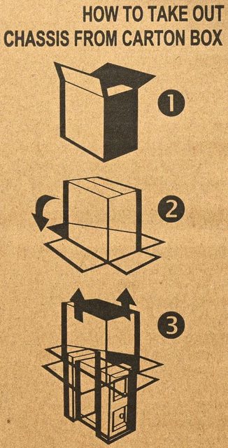 ▼打開外箱,裡面印上機殼取出方式