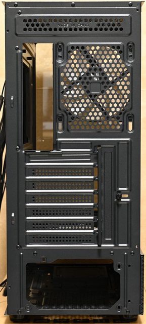 ▼後方右上通風口可裝1個120mm風扇,配置7個標準擴充槽,擴充槽上方護蓋使用手轉螺