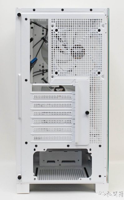 標準7槽ATX設計,最上一槽的PCIE擋板是直接開著的