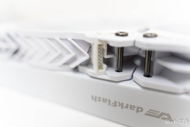 除了像藍寶堅尼尾燈的側邊圖樣外,所有冷排上的風扇四個角都有防震膠墊