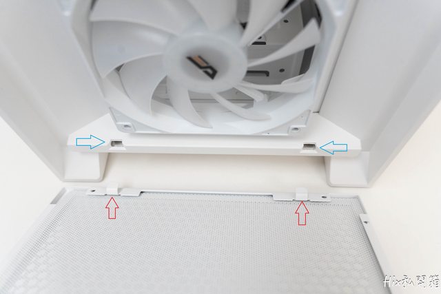 電供位有一片磁吸防塵網,這邊也能看到硬碟籠有兩個位置可作調整
