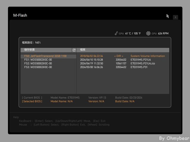 M-Flash圖示,經過重開機後即進入BIOS更新介面,透過讀取隨身碟內的檔案方式更新,