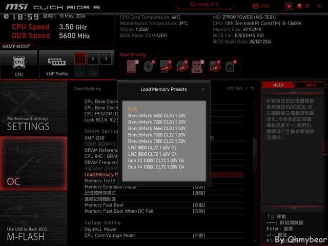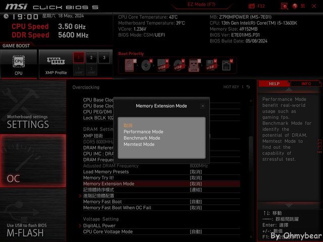 Z790 MPOWER主打的特色之一是記憶體超頻,依微星官網介紹,記憶體部分採用1SPC(1