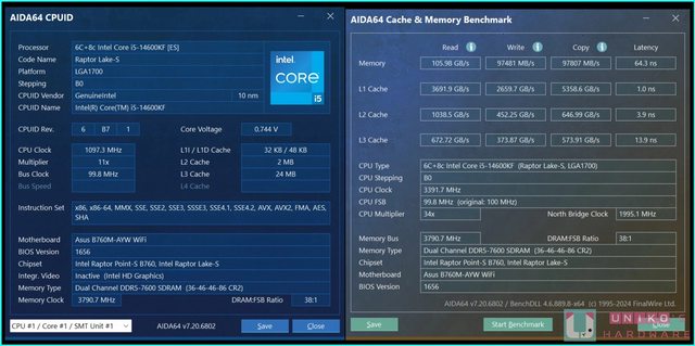 AIDA 64 CPUID、快取和記憶體測試