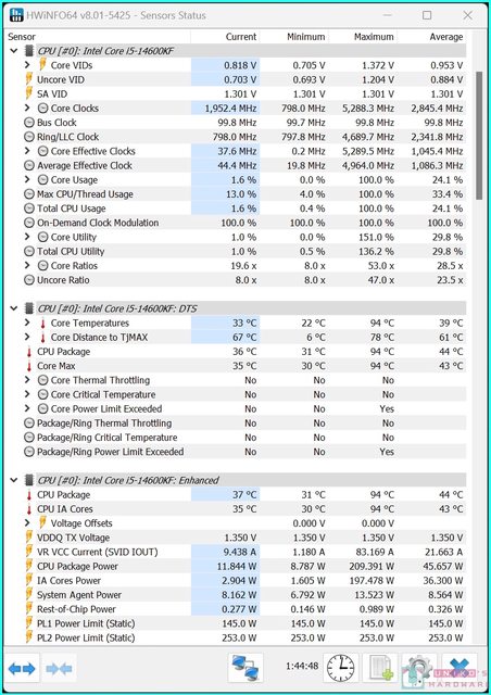 這陣子 INTEL 13 或 14 世代 CPU 穩定性問題風波不斷,我們也有參考 HWINFO 的數據來