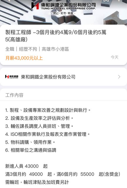 推 gs00001: 鋼鐵廠的製程都很屎,但薪水在傳產算不錯。11/30 20:33