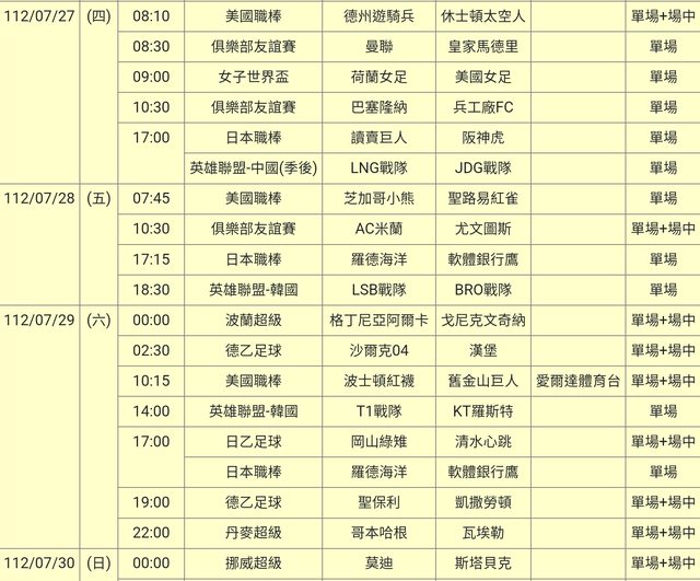標題[情報] 112-07-27單場場中