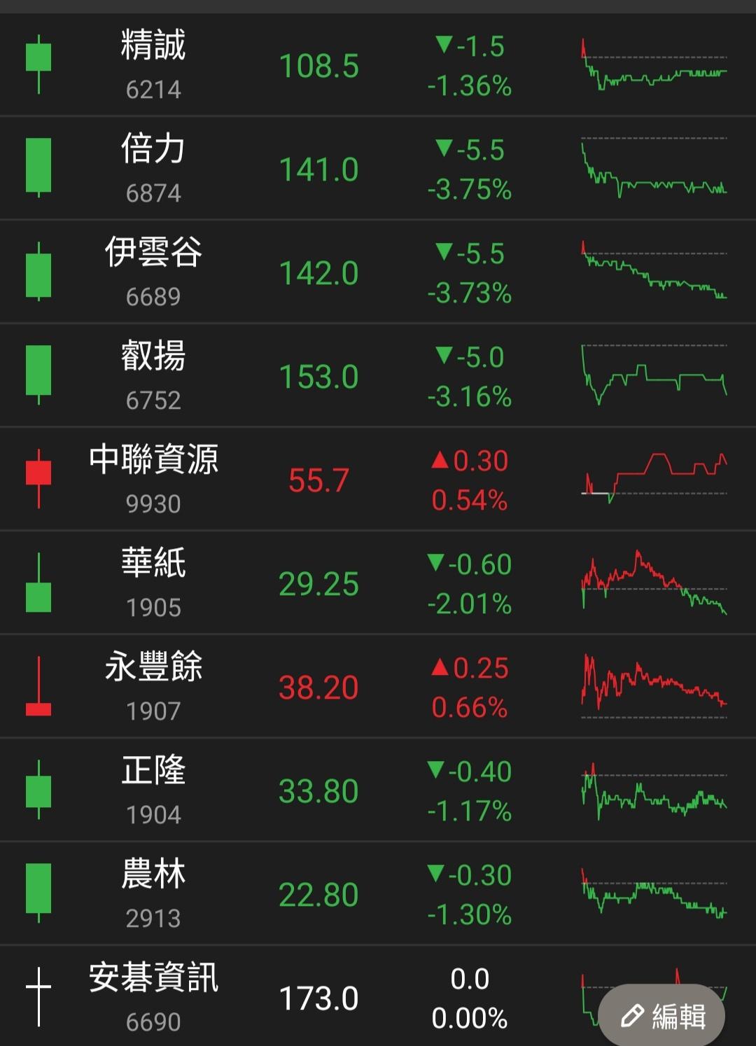 → okderla : 觀察股今天只有兩檔是紅的 07/04 19:21