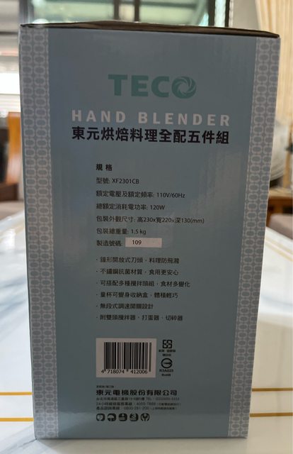 (2)TECO 東元 烘焙料理全配五件組XF2301CB(雙頭攪拌器/切碎碗/打蛋器/收納盒) (售