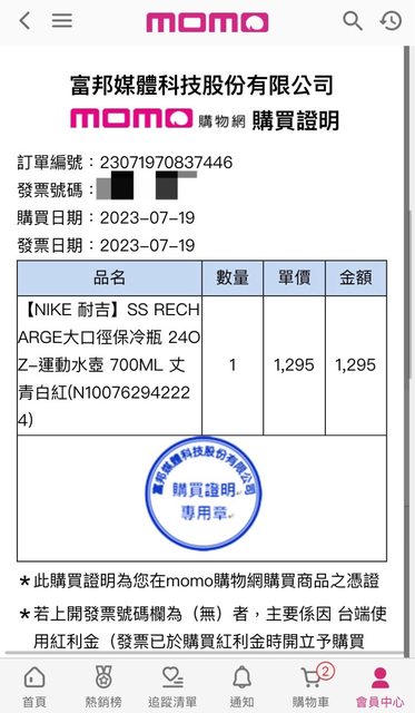 7/19momo下單購買 7/21宅配到貨