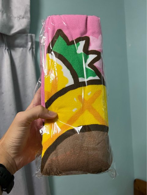 全家賣的樂事歡樂包,隨機會附其中一款沙灘巾,比較想要黃色那款,但買了兩個都是粉