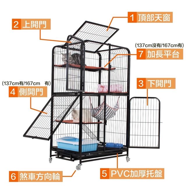 A. 三層貓籠,高度為 137 cm/黑色款 / 有附腳踏墊、平台墊、迷彩外層罩,如有需要