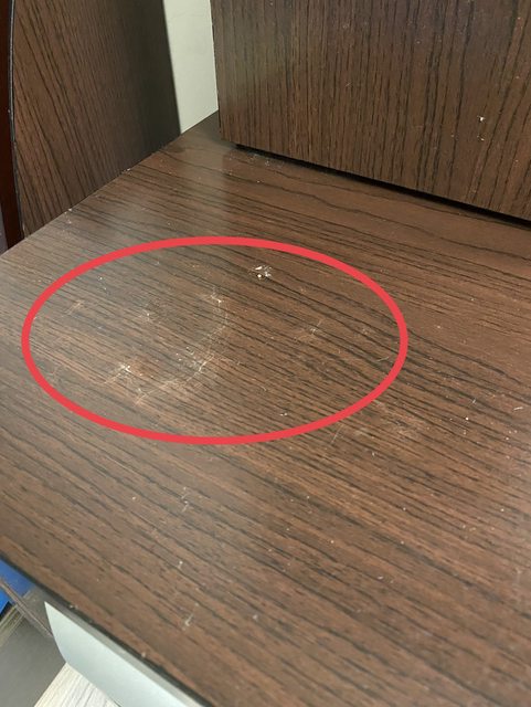 化妝桌椅一組 / 售500元 / 沒有損壞,桌面左邊有凸起(如紅圈處),不影響使用,需自取