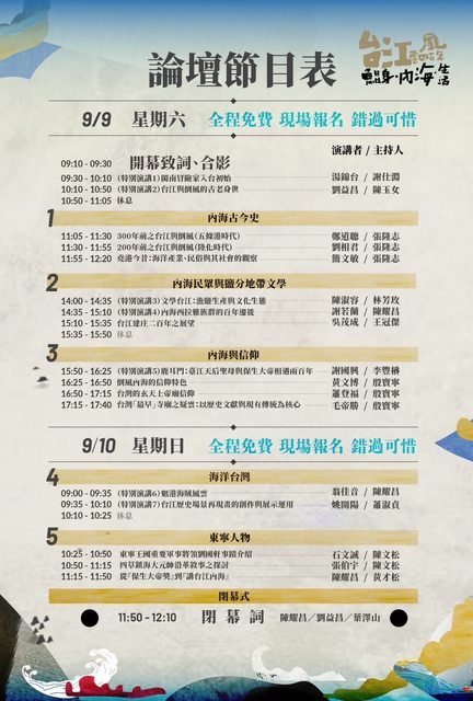 10日活動分別以「海洋台灣」、「東寧人物」為主題舉行5場論壇,與談人包括翁佳音、
