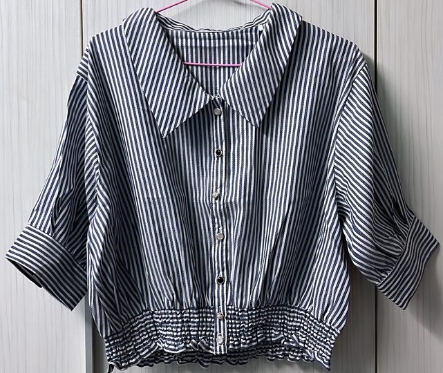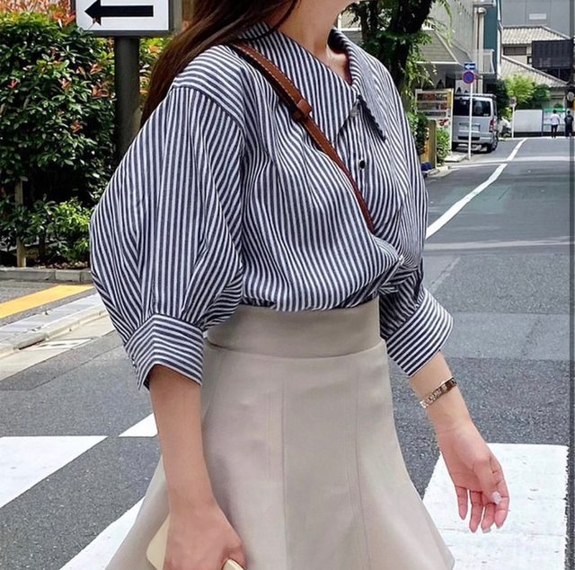 2. 全新 翻領泡泡袖條紋襯衫