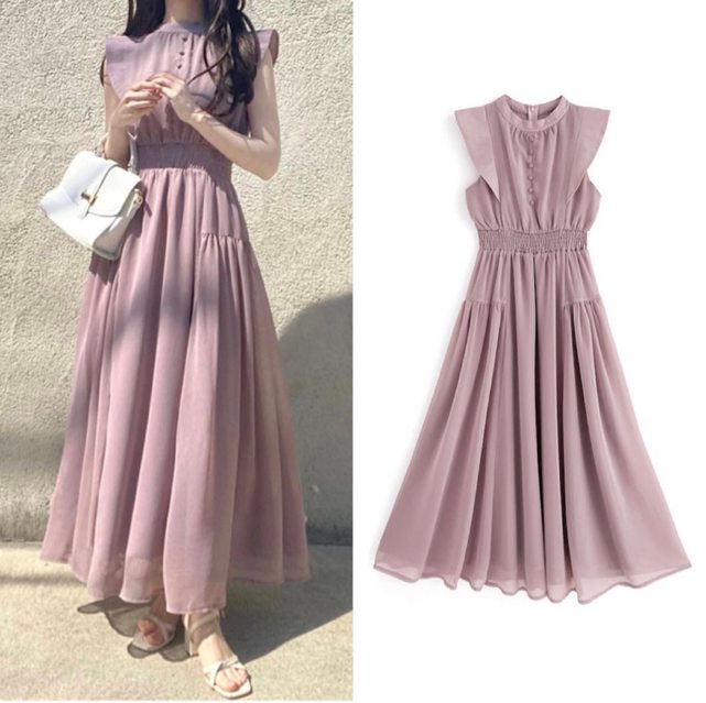 1. 全新 日本GRL 雪紡排扣荷葉袖洋裝