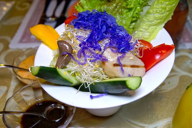 沙拉上桌時同時提供了特製千島醬與油醋醬,當然也可以一直續加。
