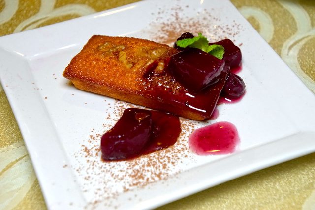 今天的甜點一號:費南雪佐火龍果醬。果醬有著火龍果獨特而鮮艷的顏色,費南雪吃起來