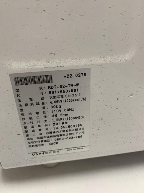 林內乾衣機(RDT-62-TR-W)日本原裝/12,500 NTD/