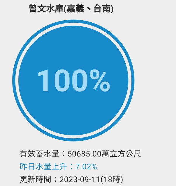 推 wwman: 恭喜台南的曾文水庫終於不用在受乾旱所苦 農作可以正常種了 09/12 01:21