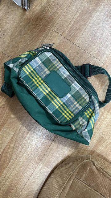 82. 綠色格紋腰包