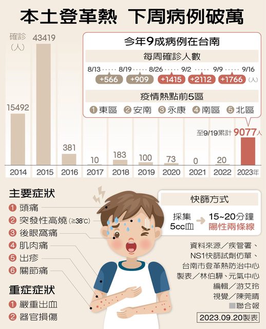醫師求救 籲設登革熱特別門診 2023-09-21 00:50 聯合報/ 記者李青縈、李文德/綜合報導 https://i.imgur.com/kA5LwUo.jpg