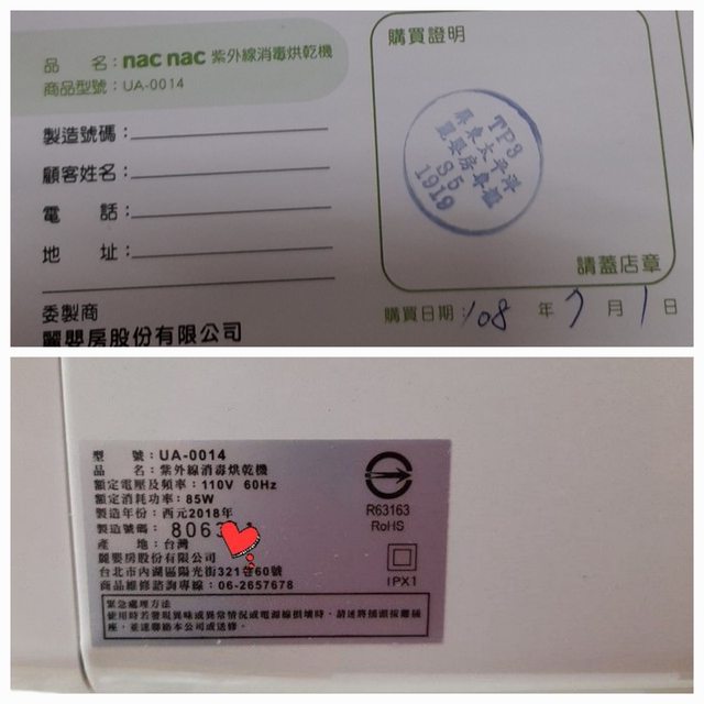 1.nacnac紫外線消毒烘乾機