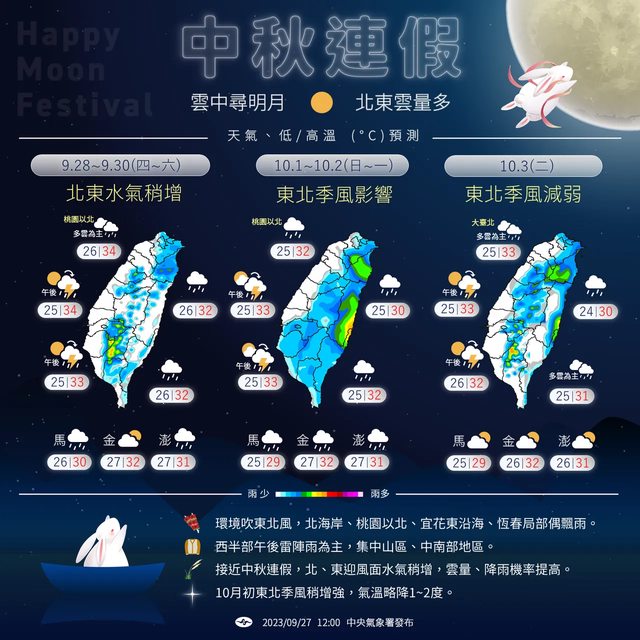 標題[新聞] 今全台有雨!東北風挾雨鬧中秋 一圖看月