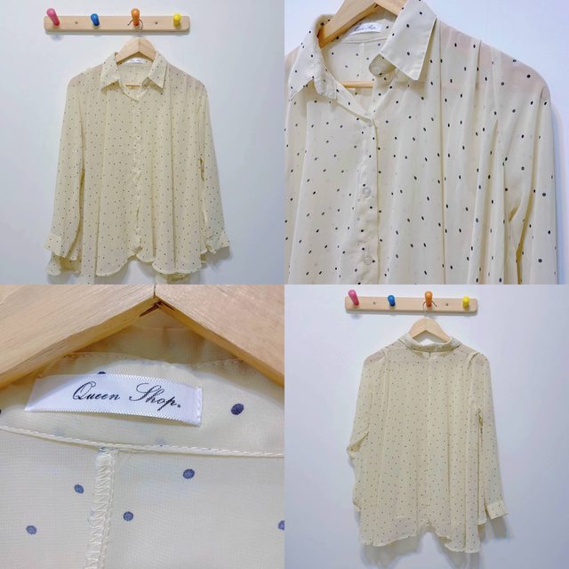 2. Queen shop 透視點點雪紡長袖上衣 150元