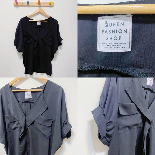 3. Queen shop 純黑雪紡上衣 150元