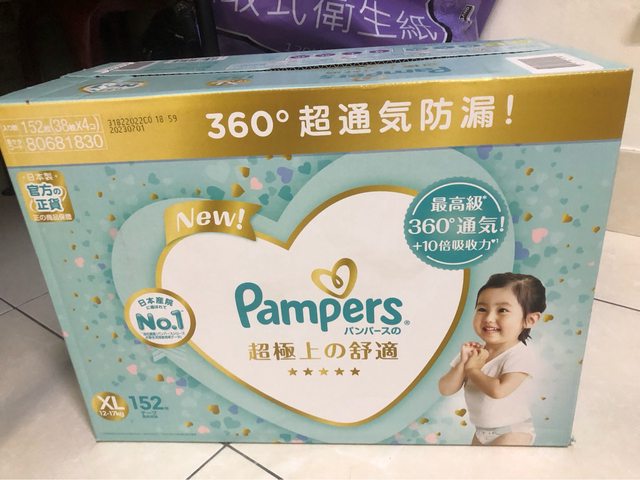 交易物品/金額/說明:好市多上個月購入幫寶適黏貼XL,152片/箱,有兩箱,$1500/箱,