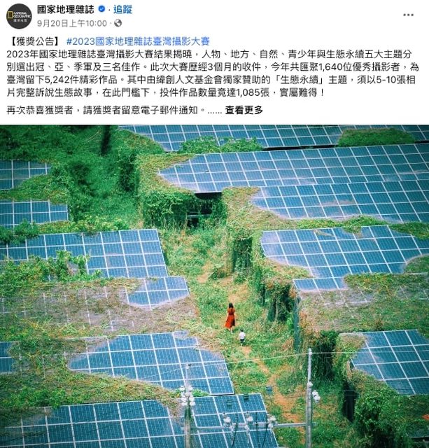 果,地方組冠軍是一張位於台南六甲區的廢棄光電場空拍照,照片中廢棄的光電板被藤蔓