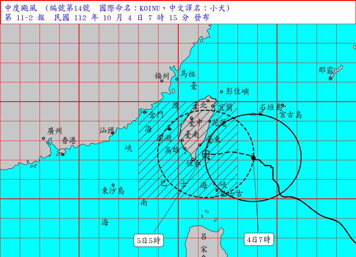 小犬最接近台灣的時候。