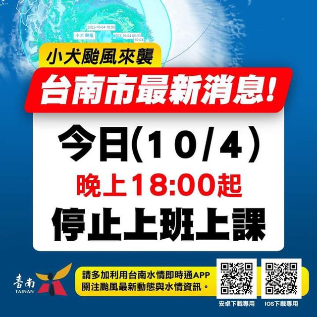 → jameshcm: 剛看新聞快訊,原來是高雄屏東宣布下午六點停班停課了10/04 10:39