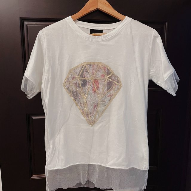 1. Cho’s room 網紗雙層鑽石白T