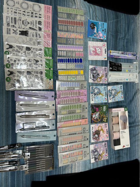 造型悠遊卡一張100,大創水晶印章全部150,好市多無痕內褲200,其他雜物都賣20,