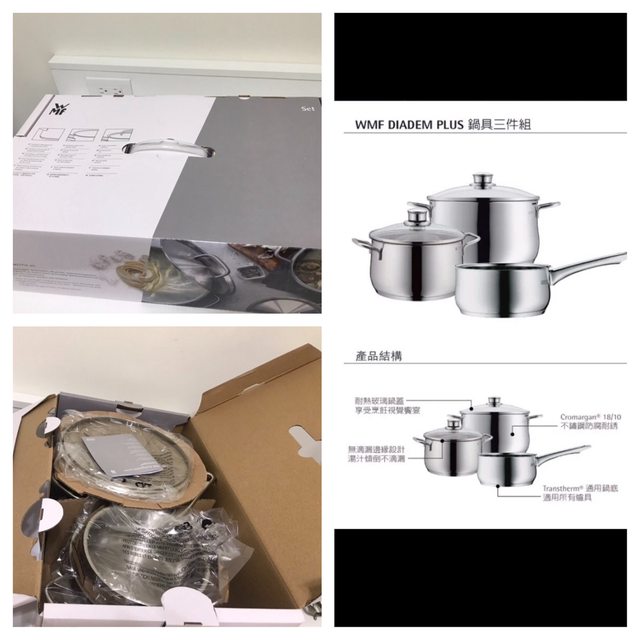 1. [全新]德國WMF DIADEM PLUS 18/10頂級不鏽鋼鍋具三鍋組(湯鍋6L+3.5L+單手鍋1.3