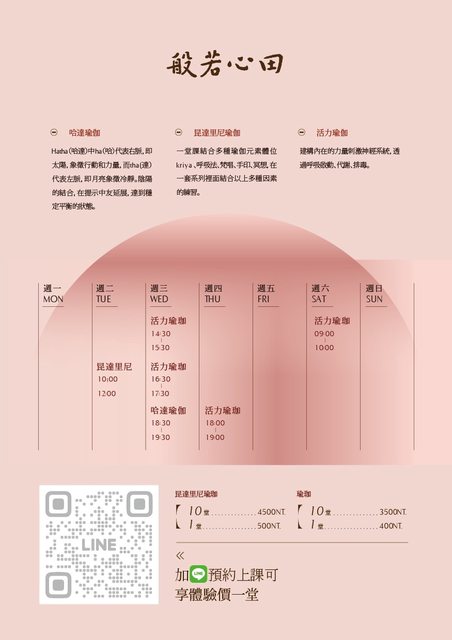 除了本周日的銅鑼浴,在東區及北區也有每週固定的瑜伽課程,歡迎一同來參與體驗