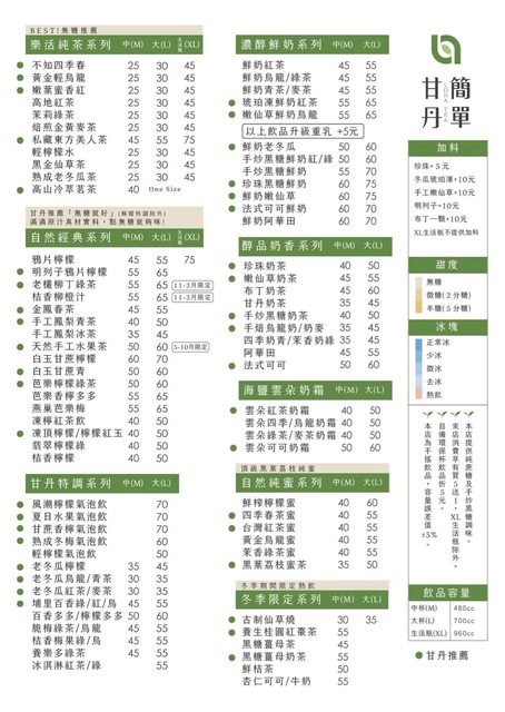 餐廳名稱:甘單簡單 (手搖飲)