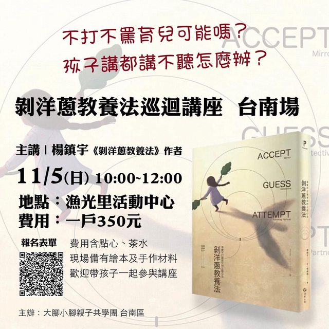 #台南區《剝洋蔥教養法》巡迴講座開始報名