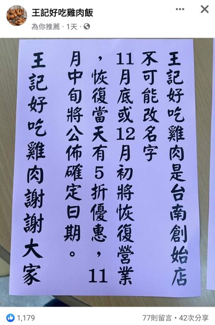 → jackloutter: 建議將11月底或12月初恢復營業打入文中,或複製貼文 10/27 01:50