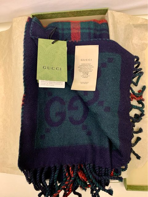 標題[售] GUCCI 格紋印花雙色純羊毛圍巾