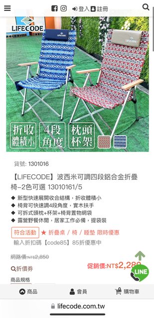 life code 四段調整鋁合金折疊椅,2022年3月份於網路購物購買,不太常用,大約只露