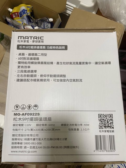 5.(全新)松木家電9吋擺頭循環扇 1000