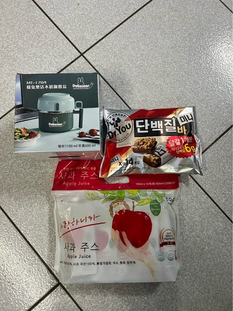 標題[交易] 咪兔不鏽鋼餐盒/蛋白堅果棒/初森蘋果汁