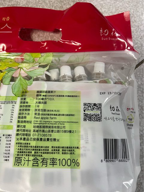 韓國初森蘋果汁10入一袋/售150
